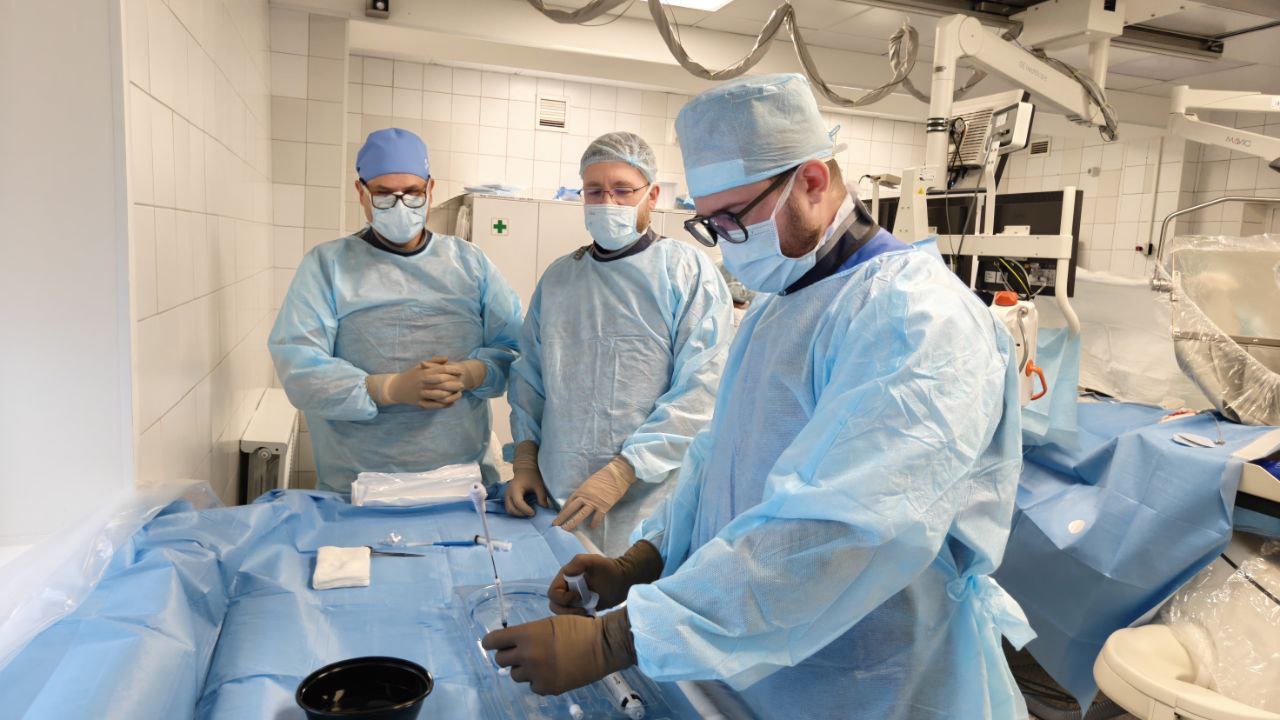 Теперь и в НИИ комплексных проблем сердечно-сосудистых заболеваний при поддержке коллег из НМИЦ им. Алмазова, Санкт-Петербург - консультировал кемеровских рентгенохирургов заведующий НИЛ интервенционной хирургии, врач по рентгенэндоваскулярным диагностике и лечению отделения рентгенохирургических методов диагностики и лечения, врач — сердечно-сосудистый хирург, к.м.н. Операции выполняли Кузбасские рентгенхирурги: д.м.н. Роман Сергеевич Тарасов, Иван Владимирович Ганюков, к.м.н. Антон Александрович Ляпин.